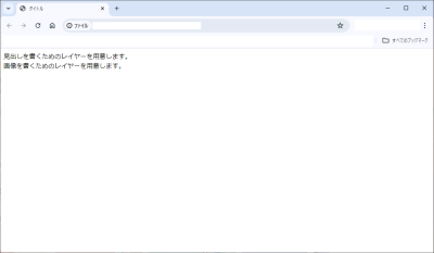 <body> <div> 見出しを書くためのレイヤーを用意します。 </div> <div> <p>1段落目の文章です。</p> <p>2段落目の文章です。</p> </div> </body>
